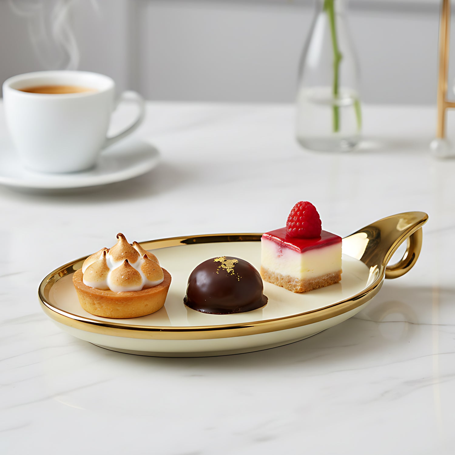 ✅ Chic Gold Rim Detailing: Enhances table aesthetics.