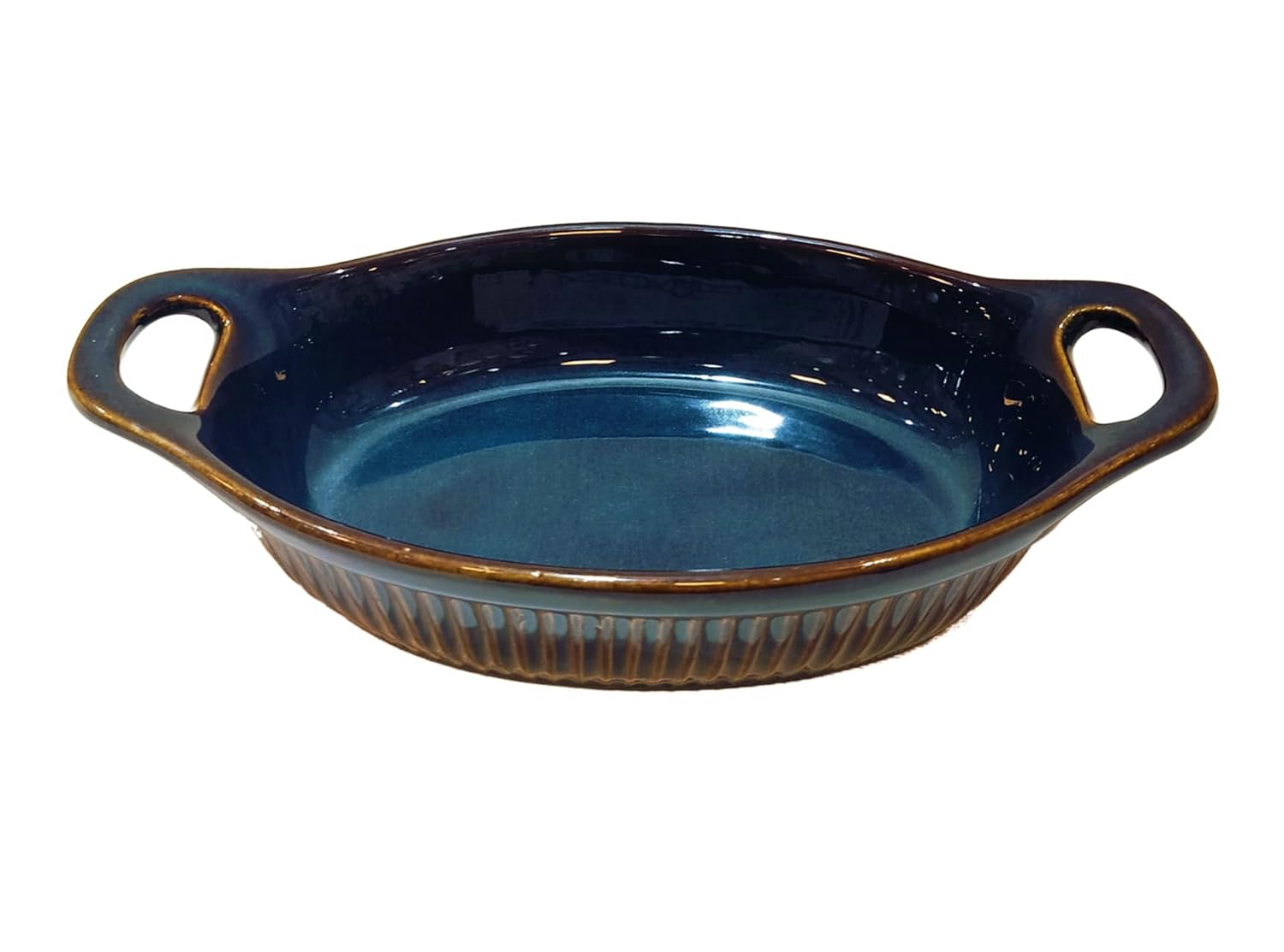 Elevate your dining experience with the Lemon Tree Dark Blue Oval Ceramic Serving Bowl (600ml)—a perfect blend of functionality and style. Made from high-quality stoneware, this durable and non-toxic serving dish is ideal for serving appetizers, soups, salads, or baked dishes. The sleek oval design with a convenient handle makes it easy to serve and carry. Its microwave, oven, and dishwasher-safe features ensure hassle-free use and cleaning. The rich dark blue finish adds a touch of elegance to your kitchen, making it perfect for daily meals or special gatherings.