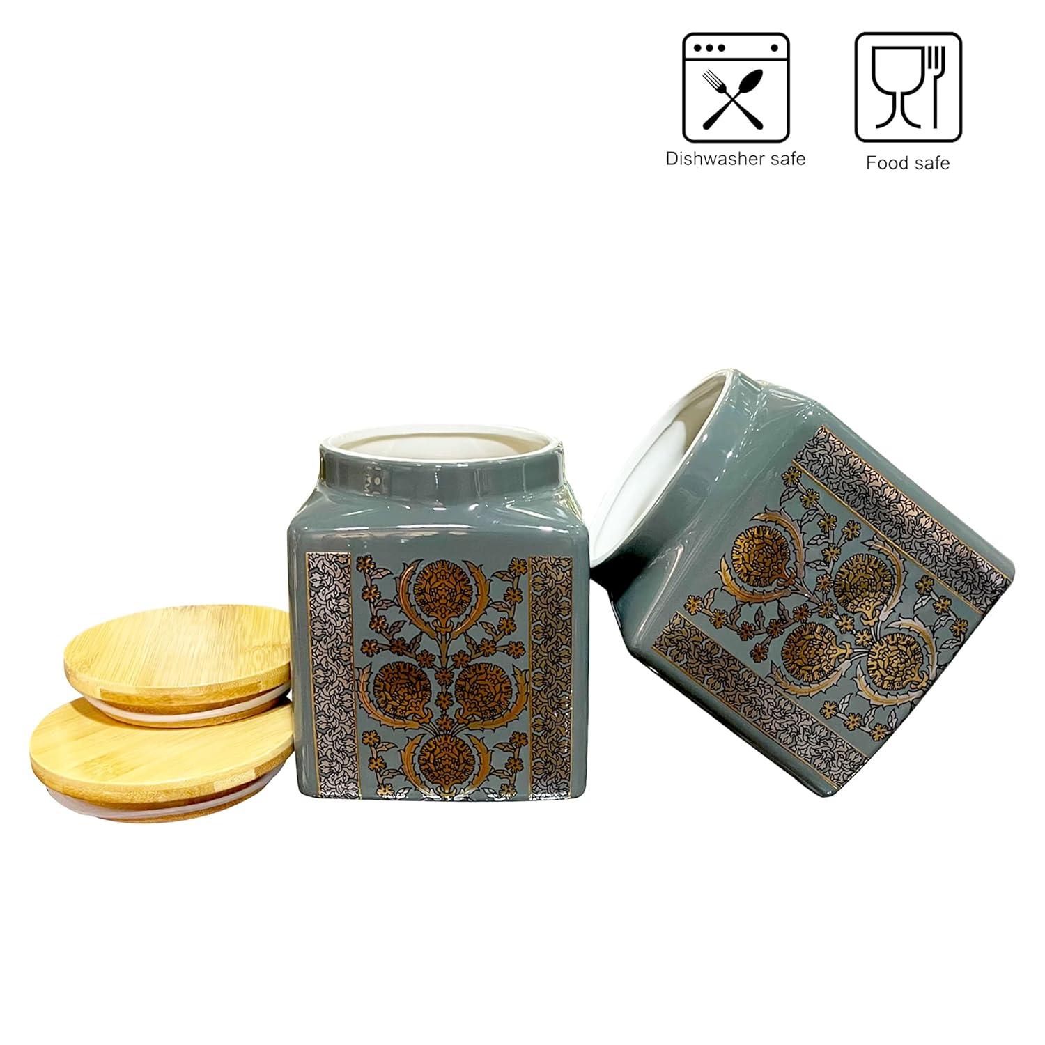 ✔ Set of 2 Ceramic Jars – Each jar has a 1000ml capacity, perfect for kitchen storage.