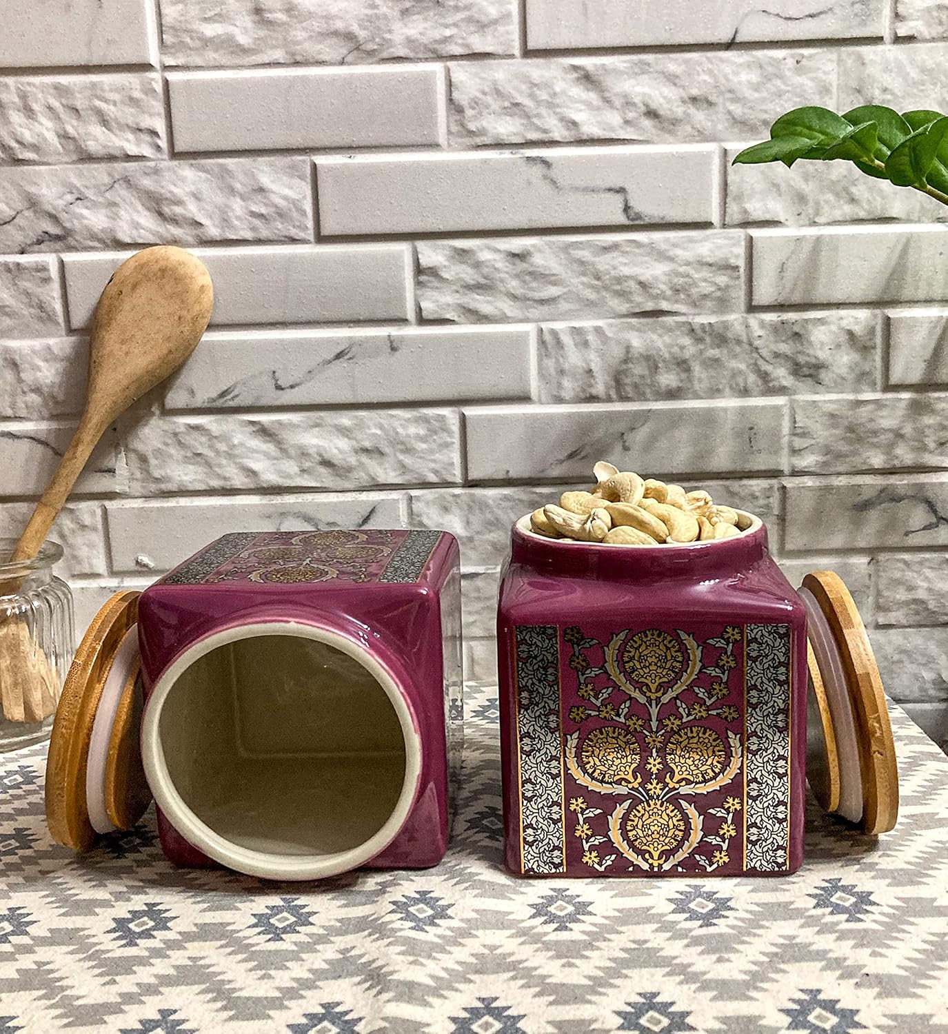 Upgrade your kitchen storage with the Lemon Tree Pink Ceramic Storage Jars, designed with a beautiful marigold flower print and a sleek glossy finish. This set of 2 airtight containers (1000ml each) is ideal for keeping snacks, dry fruits, cookies, coffee, tea, sugar, and spices fresh for longer. The premium ceramic build ensures durability, while the airtight wooden lids lock in freshness and prevent moisture entry. Perfect for both functional storage and elegant kitchen décor, these multipurpose jars add a stylish touch to your pantry or countertop.