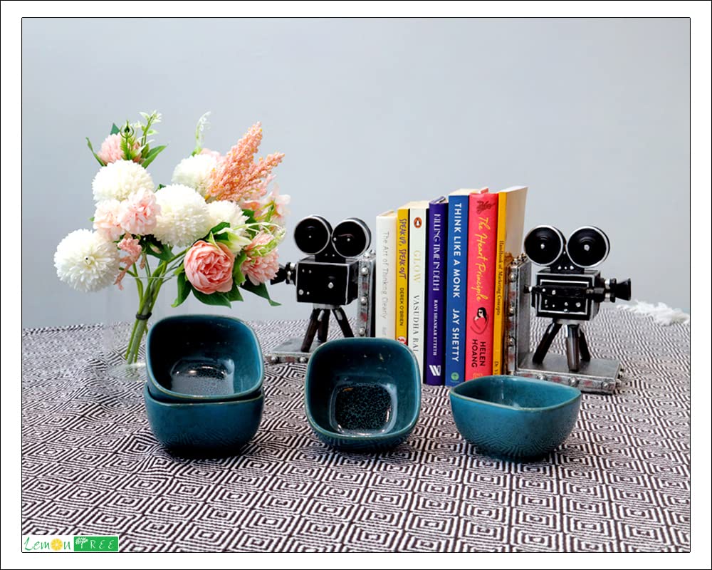 Enhance your dining experience with the Lemon Tree Set of 4 Stoneware Bowls in a stunning turquoise finish. Designed for everyday use, these 350ml bowls are perfect for serving snacks, rice, dal, fruits, salads, soups, and more. Made from high-quality, BPA & lead-free ceramic, these bowls are food-safe, durable, and stylish. Their smooth glaze and modern design add elegance to any table setting. Microwave, dishwasher, and freezer safe, these bowls offer convenience and hassle-free cleaning. A perfect blend of functionality and aesthetics, making them an ideal housewarming, festive, or wedding gift.