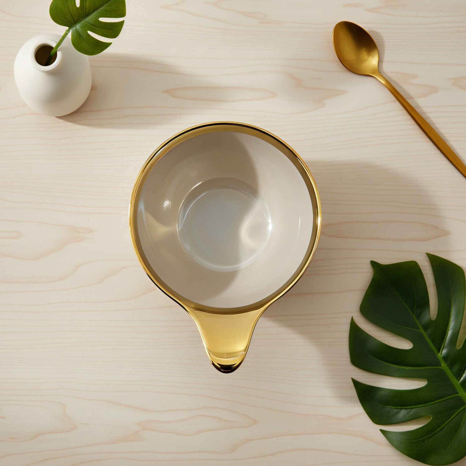 Enhance your dining experience with this elegant brown ceramic deep serving bowl, designed with a golden rim and a stylish hook-shaped handle for a sophisticated touch. This 18cm round bowl is perfect for serving snacks, salads, desserts, fruits, chips, nachos, and more. Crafted from premium food-grade ceramic, it ensures durability and safe usage. Available in Cream, Blue, and Brown, this chic bowl is a must-have for your home dining, entertaining, or party setup.